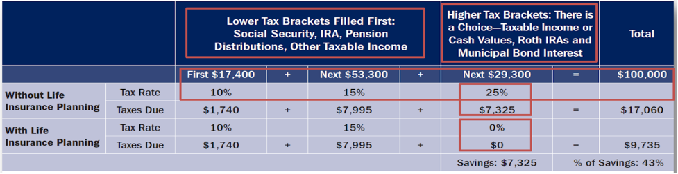 Also, whether you are equipping yourself with suitable tax-free investment income is significant. It is estimated that your tax burden saving can be 43% (as shown in the table below) - and the only difference is whether you plan ahead or not.
